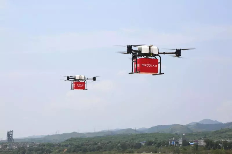▲ 京东末端配送无人机正在编队飞行