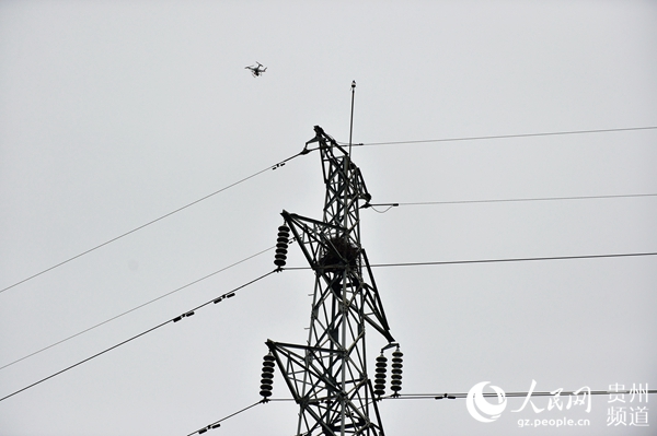 竞赛选手使用无人机对110千伏镇高黄线路开展巡检和拍照。(刘高才摄)