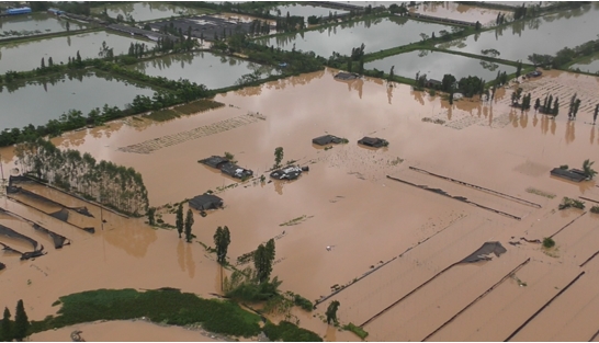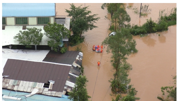 台风带来的强降雨,导致河水上涨,村庄被淹