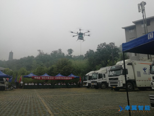 2018年9月13日,陕西省“联合力量2018”抗震救灾应急通信演练在陕西省商洛市顺利举行。此次演练由陕西省通信管理局组织,陕西省通信局副局长李林栋、陕西电信副总经理李延平、西安市机动通信局局长刘京科、以及陕西移动、联通、铁塔、陕西地震局,陕西应急办等相关领导莅临现场参观指导。演练中,卓翼智能系留无人机携带通信基站模拟地震灾害后的应急高空通信实战应用得到了领导们的一致认可与好评。