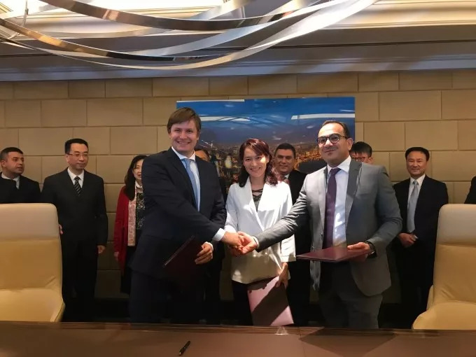 9月18日,亿航智能副总裁唐哲君、Abraham科技公司董事总经理Stanislav A. Kochkin,与AZANS阿塞拜疆共和国空中交通管制机构总监Farhan Guliyev,在中阿多方的见证下签署了合作备忘录。未来,三方将积极推动无人机相关业务在阿塞拜疆落地、发展,实现共赢。