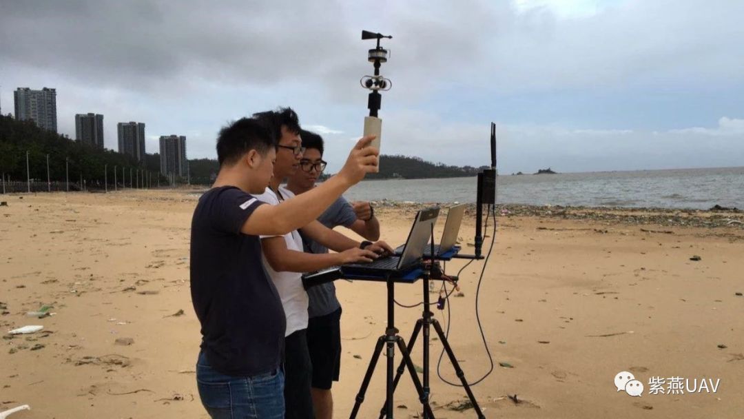 到达海边,当时的风速依然有6-7级。紫燕穿越者巡察机依然迎风起飞;从操作员的发型可以看出,当时的风速非常大;电视台闻风前来报道,风太大,主持人眼睛都眯起来了。