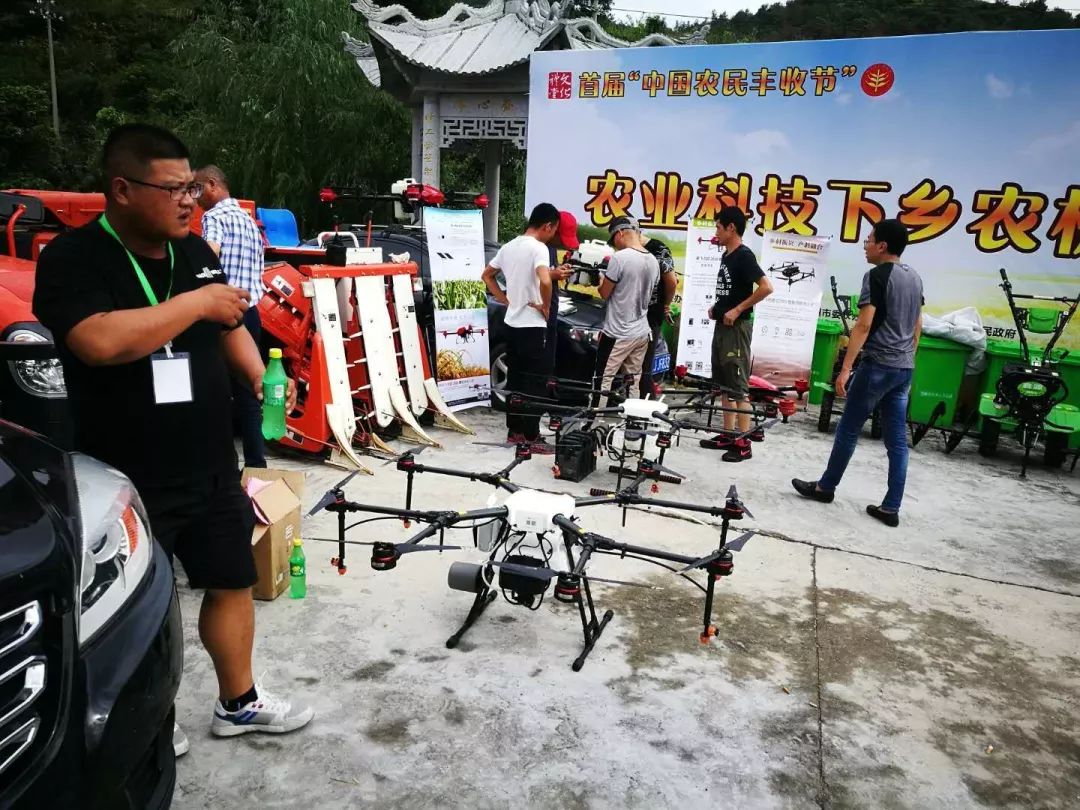 在全国“农民丰收节”广东梅州分会场,大疆农业联合大德汇通科技参与了农机装备展的展示和演示活动。