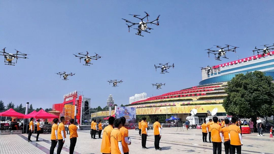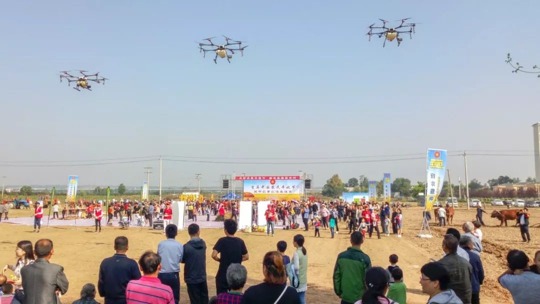 在陕西杨凌分会场,大疆农业联合苏州嗨森及山西农业大学无人机创新团队,在开幕式上进行了植保机飞行表演。在关中农事农活表演赛环节,大疆农业联合富康农机汽贸进行了无人机喷药表演。