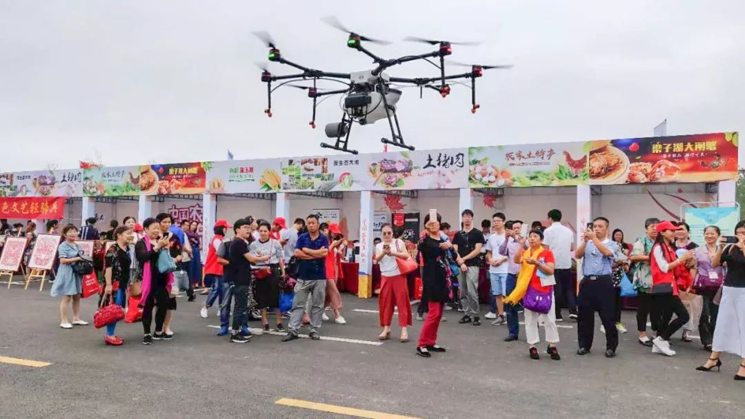 在武汉分会场,大疆农业携手湖北卓沃出席了梁子湖农民丰收节活动,并进行了植保无人机演示。