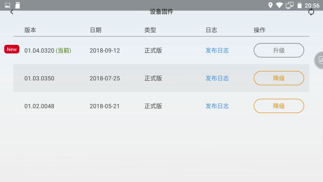 另外,为方便大家升级,针对 MG-1P,新增了 APP 升级固件的功能,即今后用户可通过遥控器进行固件升级。
