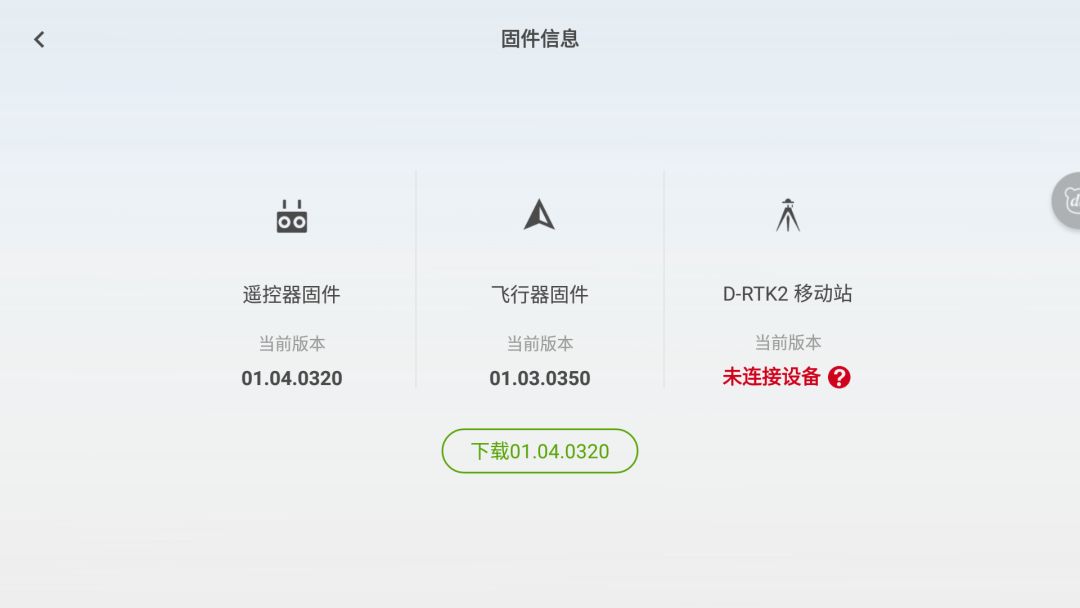 1) 点击 APP 主界面右下角“设备固件”按钮进入固件升级界面,当有新固件时,右下角提示“有新固件,请更新”(确保遥控器处于联网状态);