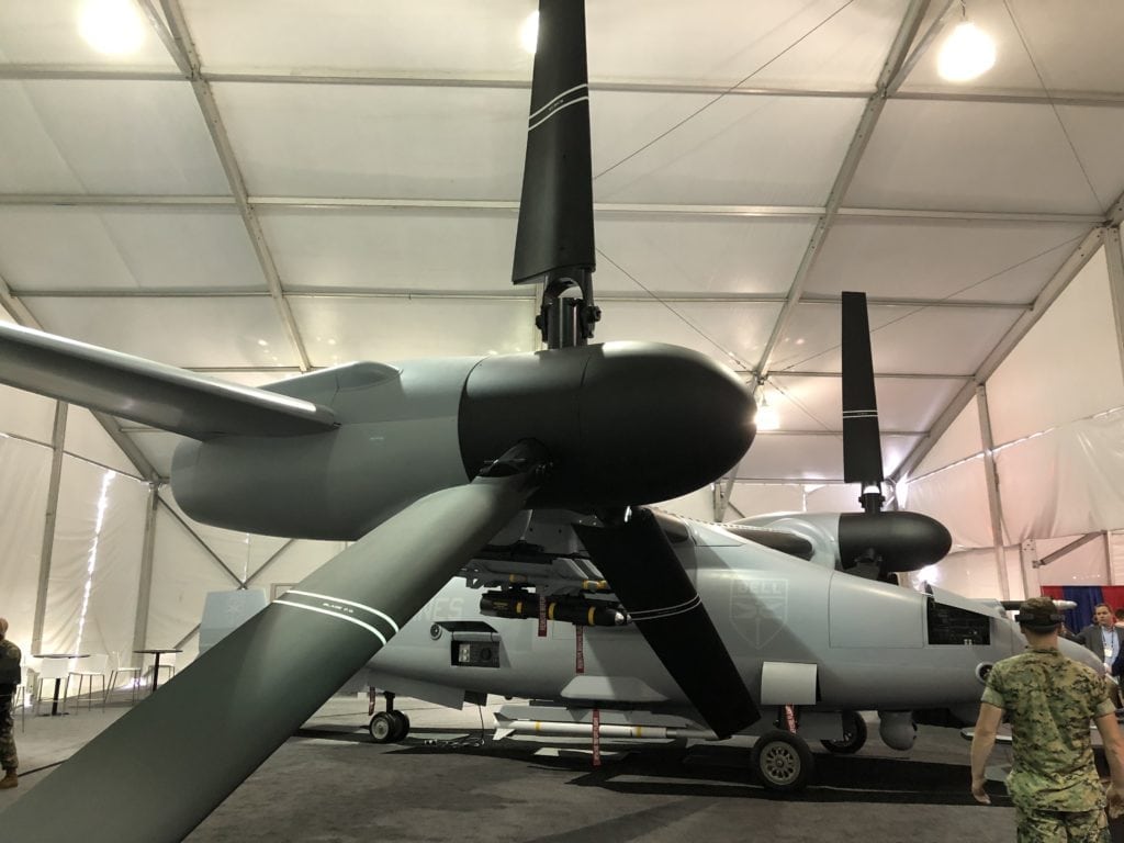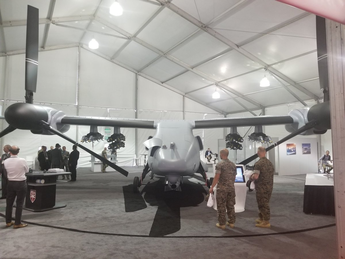 9月25日,美国贝尔直升机公司在2018现代海事展(Modern Day Marine)上展示了V-247无人倾转旋翼机的全尺寸模型,该机和贝尔公司的UH-1Y尺寸相当,可以承担综合防空、电子战、空中预警和精确打击等任务。