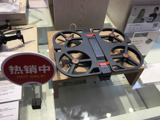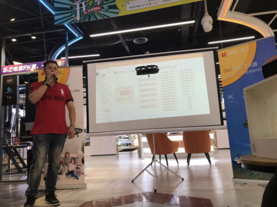现场工作人员向大家详细介绍了逗映无人机的优点,折叠式的设计让它放在背包不占空间,便于携带出门。在桨翼方面则使用了寿命长、性能稳定、变速顺滑的无刷电机,而且自带保护罩,飞行时更加安心。