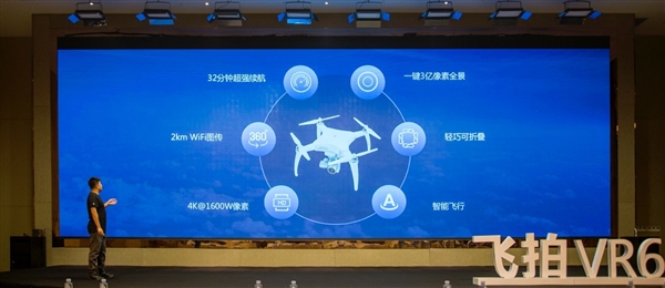 正如飞拍这次发布会的主题“飞的久,拍的6”一样,主推新品VR6 Pro在续航能力和拍摄性能上有着出色的表现。32分钟持久续航、一键3亿像素全景拍摄,只卖“2999元”的高性价比定位也足够吸睛。