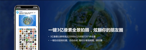 而在社交场景应用体验方面,飞拍科技开发了“一键3亿像素全景”拍摄功能,可拍摄分辨率高达25000*12500的全景相片,拍摄完即可通过飞拍App将作品一键分享微信朋友圈、微博。