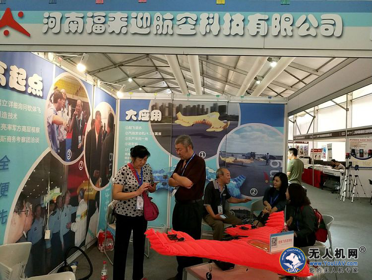 河南福来迎航空科技有限公司携带其自主研发设计的“软体无人机”亮相展会。“软体飞机”,又名可充气飞机,除了发动机和飞机架由金属制成,机翼乃至整个躯体都是采用柔软的高强高模特殊材料制成,从箱子里面取出来吹气成型。同比一般无人机,机翼面积大,载荷能力强,可做超低速超低空飞行,具有良好的弹性,耐撞击而不受损坏。