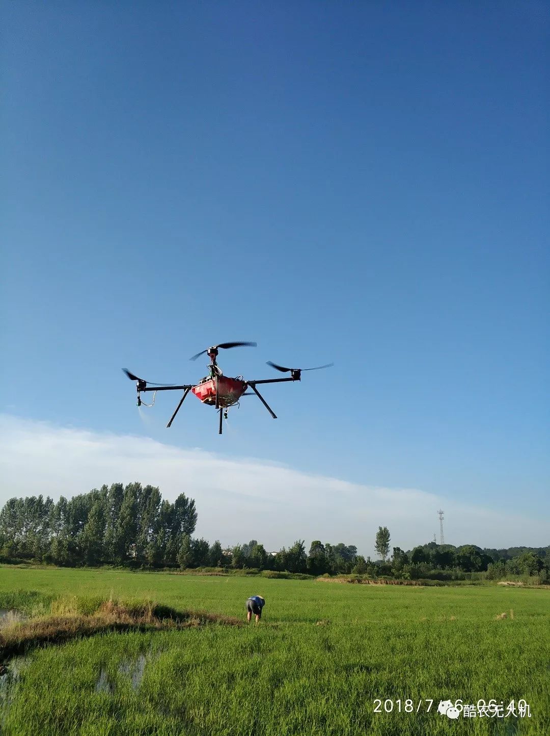 当然,对于多旋翼无人机,旋翼数和喷头位置怎么设计,这些都对喷洒效果,对能否抵达触杀作物叶片背面的害虫有很大的影响哦。比如,酷农的蜘蛛侠为何设计成四轴的呢?多旋翼的特点是同等载重下旋翼越多旋翼尺寸越小,相互风场干扰越厉害,也就是说四旋翼的风场最好哦,六旋翼次之,八旋翼更差哦,至于六轴十二旋翼、八轴十六旋翼我就不多说了。有些厂家还把喷杆设计到七米多长,风场直径两三米,这种设计纯属于坑害客户,不能充分利用植保无人机的风场进行喷洒作业都属于耍流氓,植保无人机的特点就是利用无人机飞行过程中旋翼产生的风场对药液下压到达作物根部使作物着药均匀,如果只靠自然飘落效果甚至还不如人工或传统机械以及载人大飞机作业。