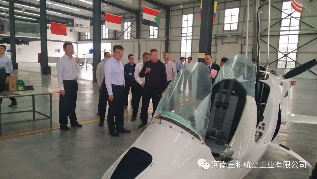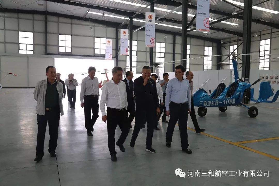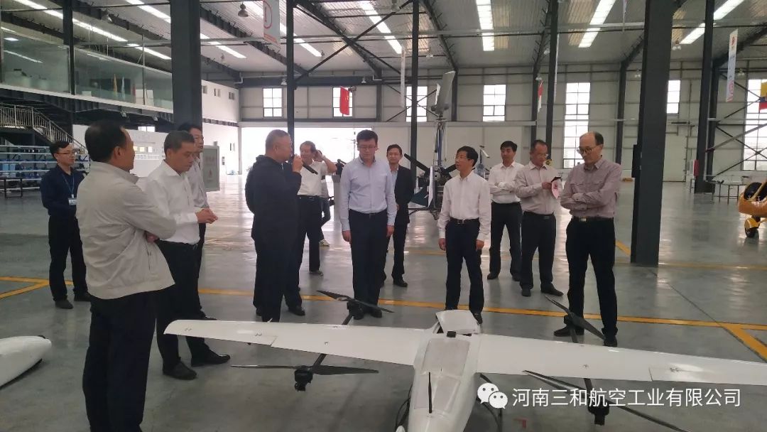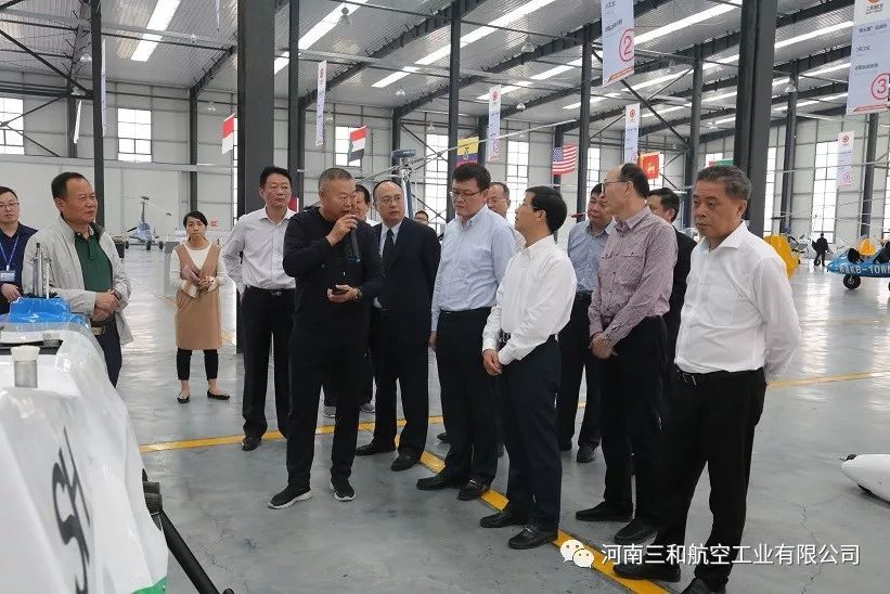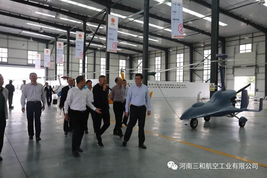 在郑州市副市长万正峰、郑州市航空枢纽办主任王宏、河南省航空运动管理中心主任牛安林、上街区常务副区长虎荣鑫、副区长阎胜、郑州通航试验区管委会副主任孙喜忠等领导的陪同下,一同参观考察了我公司自主研发生产的“太阳之鹰”自转旋翼机、“穿云鹰”无人旋翼机、“天眼”垂直起降复合翼无人机和S50“小旋风”无人机。