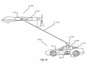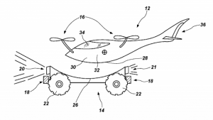 在美国专利号9682772中,发明家向我们阐述了一种将直升机等旋翼飞机的垂直起降能力与固定翼飞机的低能耗和高速度相结合的飞行汽车。该发明去年六月已经发布并且授权给了韩国首尔的EXENS公司,它被描述成一种多级倾斜和多旋翼飞行汽车。其主框架外形为矩形,内部以网状结构隔开,载人主体部件安装在主框架的中心以便使飞行器平衡,多个螺旋桨安装在机体上,机体下侧还安装有辅助降落的轮子。据称该款飞行器的飞行续航时间是普通旋翼飞机的3倍,续航里程是普通旋翼机的5倍。