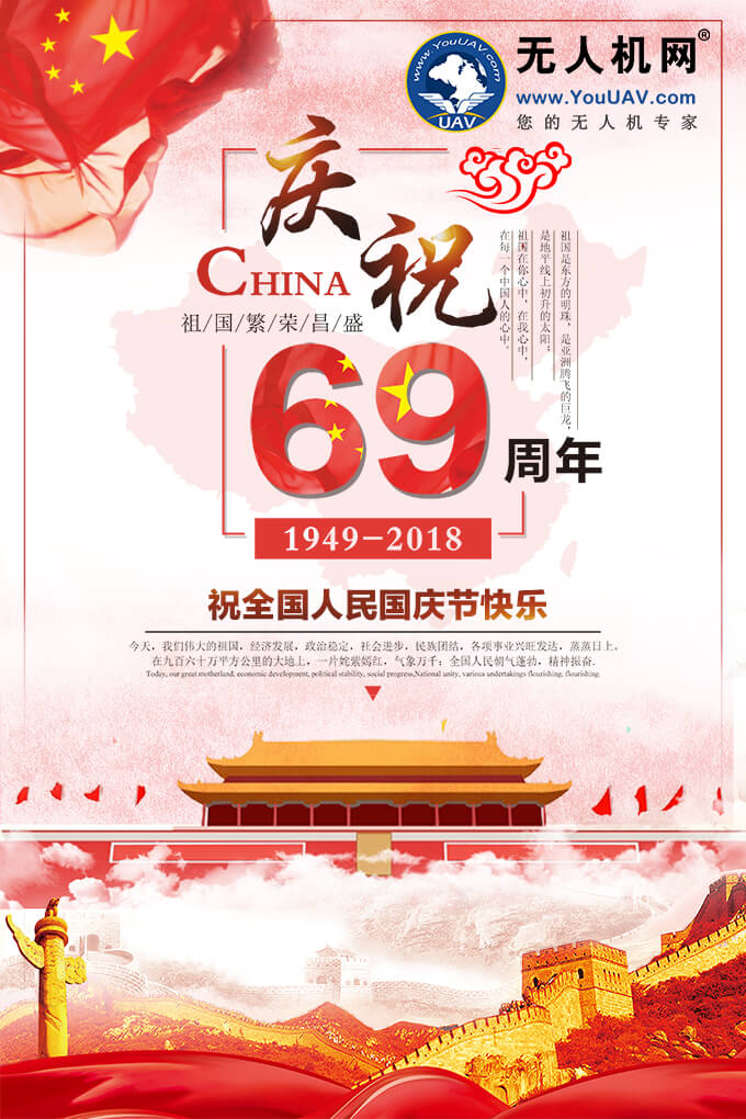 在祖国六十九年华诞之际,我们集雄心壮志,创锦绣前程,愿山河壮丽、江山不老!愿无人机行业朝气蓬勃、蒸蒸日上,愿您阖家欢乐、美满幸福。