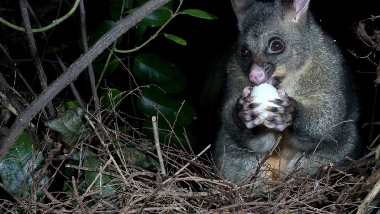 负鼠长有较长的口鼻部,像老鼠一样的尖嘴;耳朵没毛,薄得有些透明;像鞭子一样能缠握树枝的长尾巴;每只脚上有5个趾头,每只后脚上的大拇指能折起来,贴近脚底;50颗功能齐全的牙齿,荤素通吃。负鼠的体型小的如老鼠一般大,最大的比猫大。负鼠最初来自澳大利亚,但是目前在新西兰,对其本土植物和野生动物危害极大。其在新西兰数量庞大(3000万只以上),繁殖能力极强(妊娠16-18天),喜食当地的树木和鸟类的蛋。