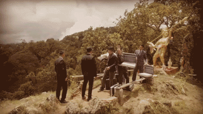 难的镜头不一定是低空或穿越,大景转特写也很考验飞手与云台手的协调能力,有一个镜头是在清迈的一座山崖上拍摄李问一伙人进行交易,这个镜头的难度在于无人机需要从很远的地方开始,走一条类似于逗号的飞行曲线,镜头环绕着演员不断靠近,在环绕结束的时候飞行器和云台相机需要同时停下,并且要清楚的拍到郭富城的表演,我们知道云台手和飞手两个人的配合是有一定延迟的,所以这一条拍了三次才完成,好在郭富城在这场戏也是一人分饰两角,我们在调整,他也在调整情绪,最后的效果郭富城自己很满意,导演也非常满意。