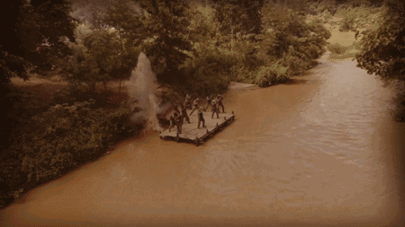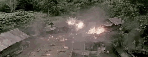 顺带一提,爆炸是真的吗?是的,在电影院里看到的军阀村爆炸都是来真的,近火的演员都有抹防火膏,用的是进口火药,视觉效果好且容易控制。假如爆破的画面张力不够的话,还可以在短时间内恢复炸毁的村子房子,这是美术组在设计场景搭建时已经考虑到的,非常佩服他们在设计上的巧思与专业!