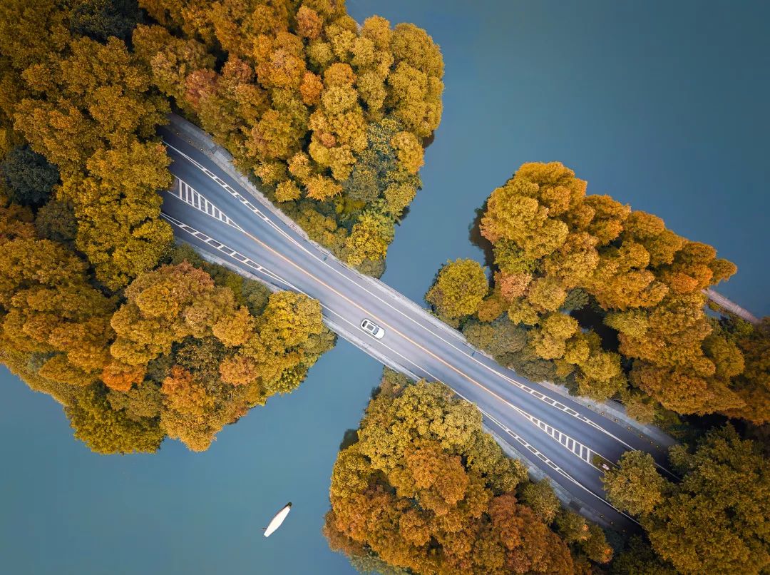 高挂的月明和路边的落叶悄悄对人们耳语:秋天来了,带上无人机,去追逐那山岭间的斑斓吧。