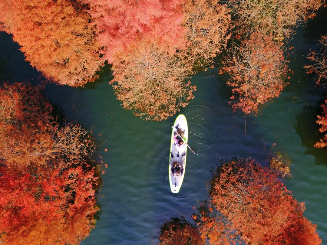 道路依旧车水马龙,高楼依然巍然耸立,秋意却静悄悄降临。泛舟公园的湖里,感受红叶与秋水带来的宁静。