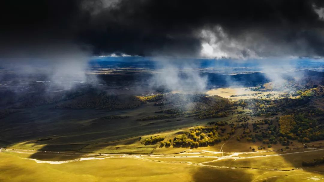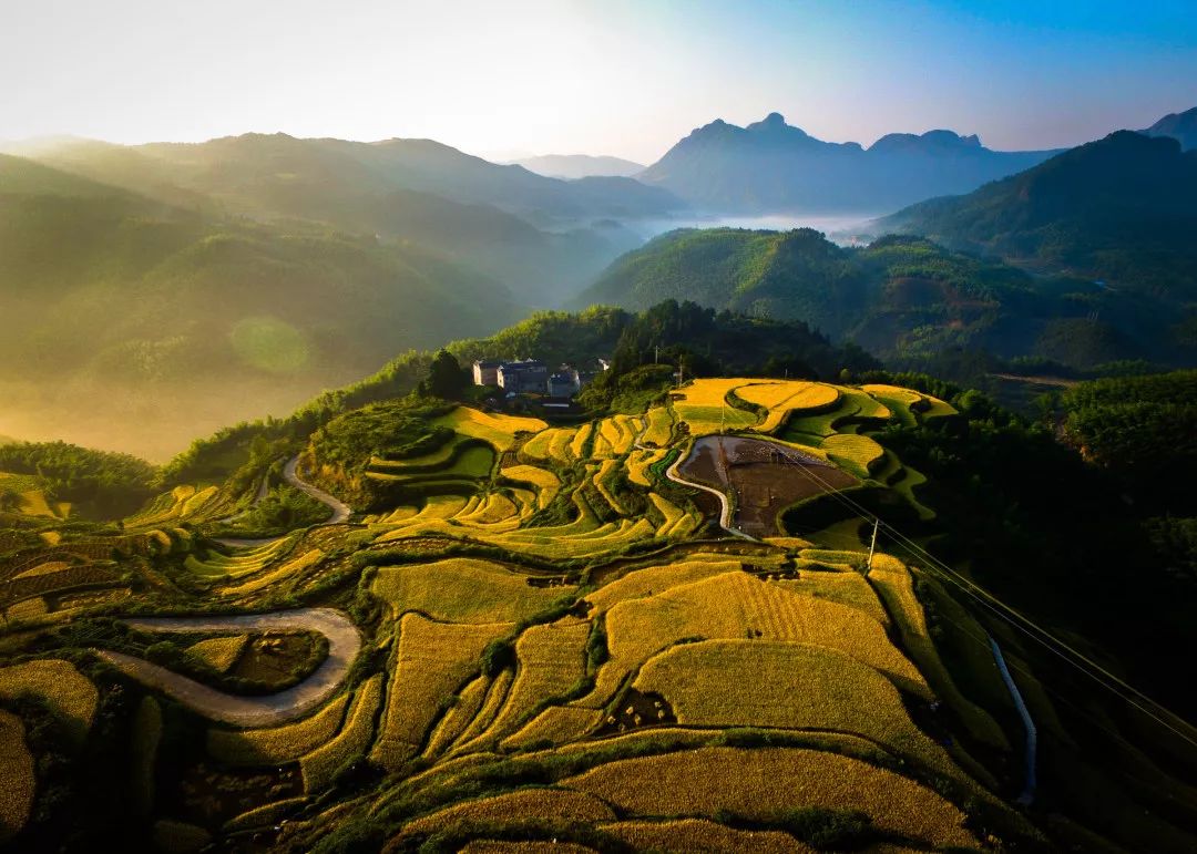 用无人机俯瞰浙江遂昌高坪,层叠的梯田错落有致,金色的水稻像是散落的金帛覆盖着大地;内蒙坝上遒劲的山冈间,阳光透过云层洒在草地上,宛如仙境。