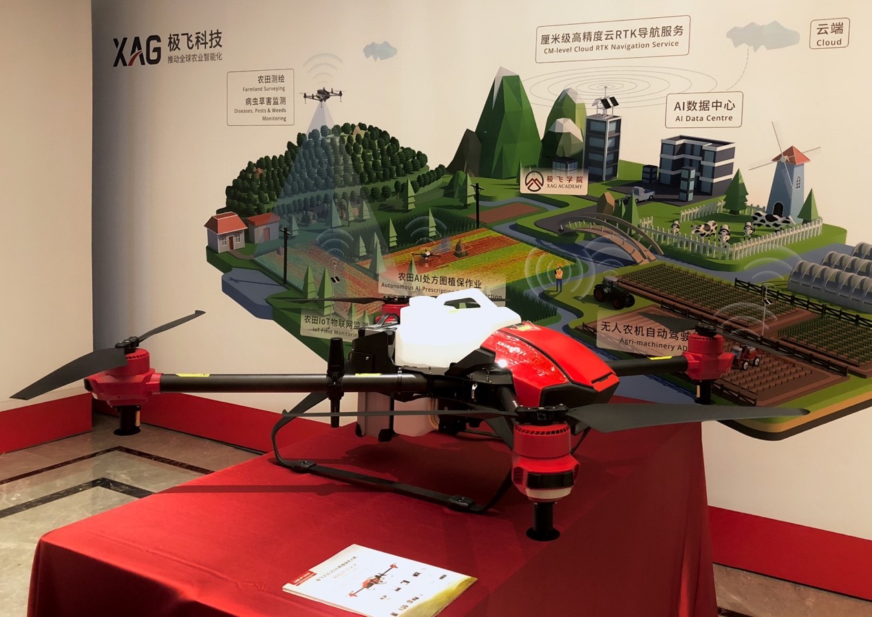 极飞科技作为“2018年度农世界奖”唯一获奖企业,在特别展位展出了极飞 P 系列植保无人机、C 系列地理测绘无人机、FM1智能农田监测站等一整套智慧农业解决方案。