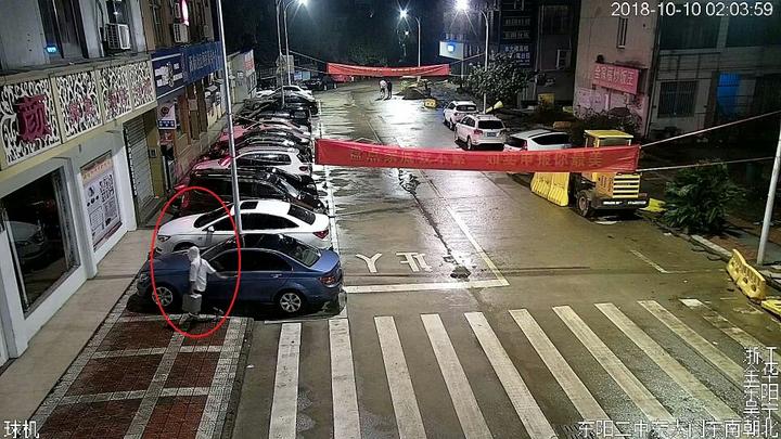 当天上午,东阳市公安局吴宁派出所接到报警后,马上对案件展开侦查。通过视频比对,民警发现,2起盗窃车内财物案件为同一人所为,作案的是一个身穿白色上衣的年轻人。