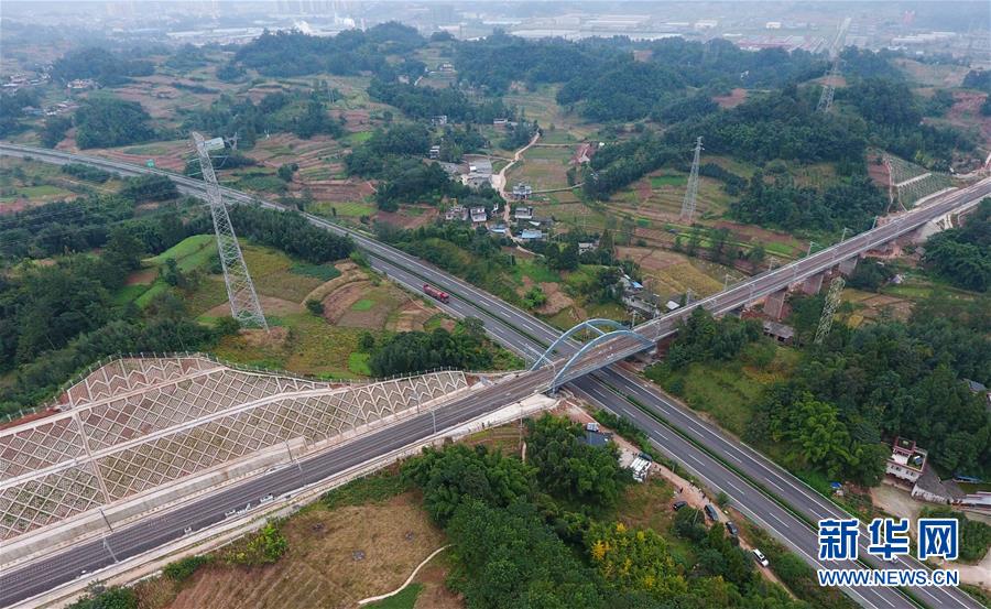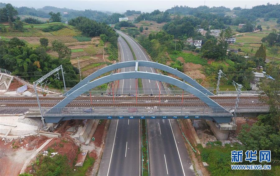 这是10月11日无人机拍摄的川藏铁路成雅段跨乐雅高速公路大桥。新华社记者薛玉斌摄