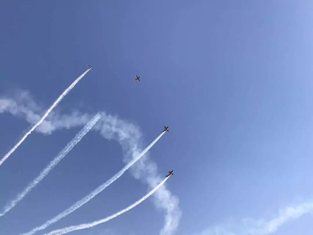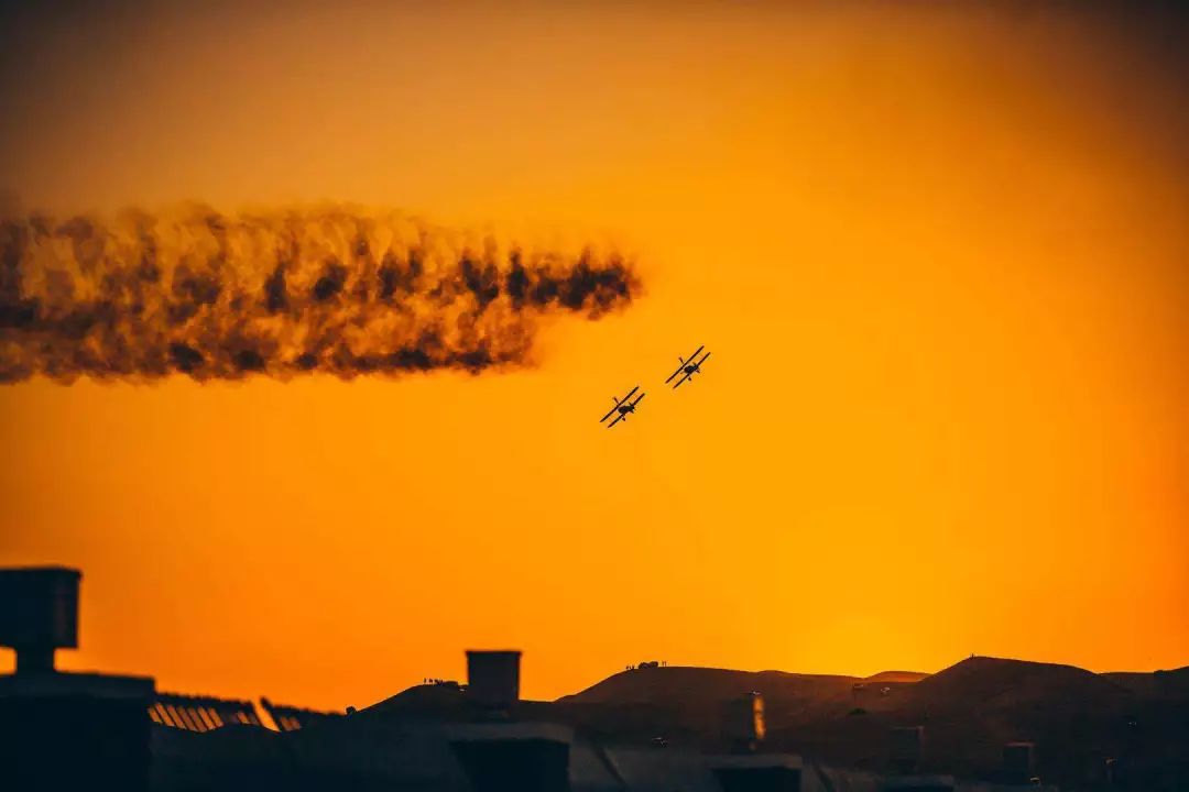 阿拉善英雄会上的飞行表演也是精彩纷呈,能够滴出水来的湛蓝天空配上迷幻缭绕的烟雾,美呆了!