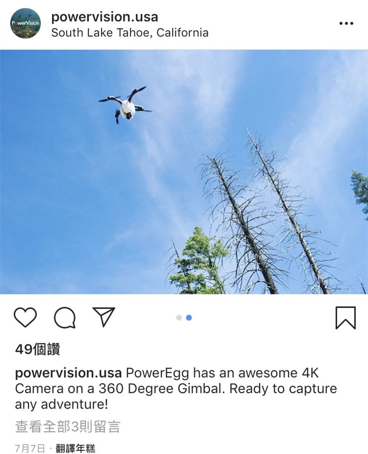 这张可以清晰的看到PowerEgg小巨蛋的4K高清航拍相机呦~