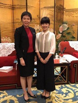 亿航副总裁张妍与国际民航组织秘书长柳芳合影。