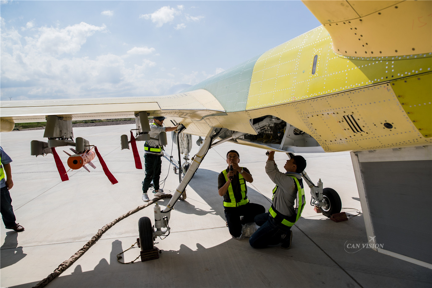 机务人员进行飞前检查