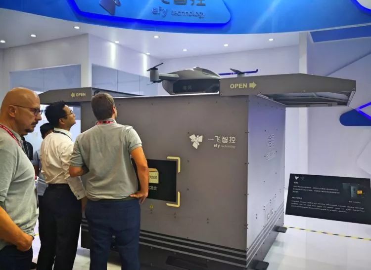 天津一飞智控带来深圳物博会的正是一套无人地空物流系统,这也是其”鸾凤“无人机,“梧桐”智能无人机场首次向大众消费者揭开面纱。记者现场看到,智能无人机场外观像是一个大大的灰色方盒子,正前方有一个收发货格口,以及手机扫码处,可以像自主快递柜一样,自助存取货物。“盒子”的顶端可以打开,供无人机起降,以及取放货物。