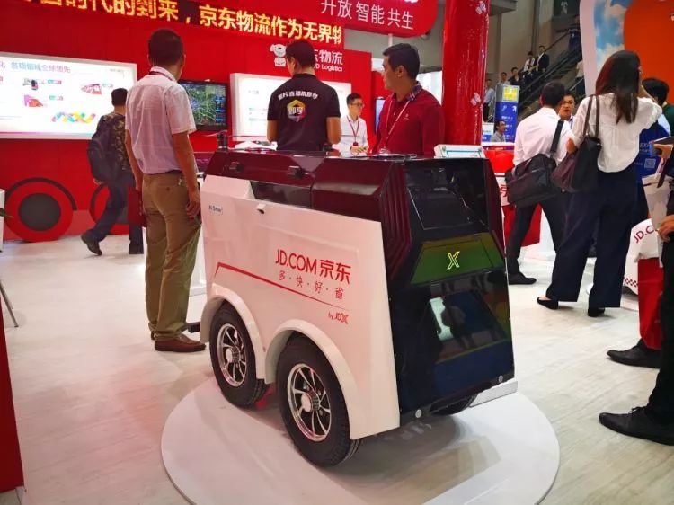 电商快递企业们也纷纷在物博会上展示出了自身最先进的“无人化“物流设备。京东物流带来了智能搬运机器人,巡检机器人、配送机器人二代、无人机等多项产品,其中V3无人机是首次在华南地区亮相。