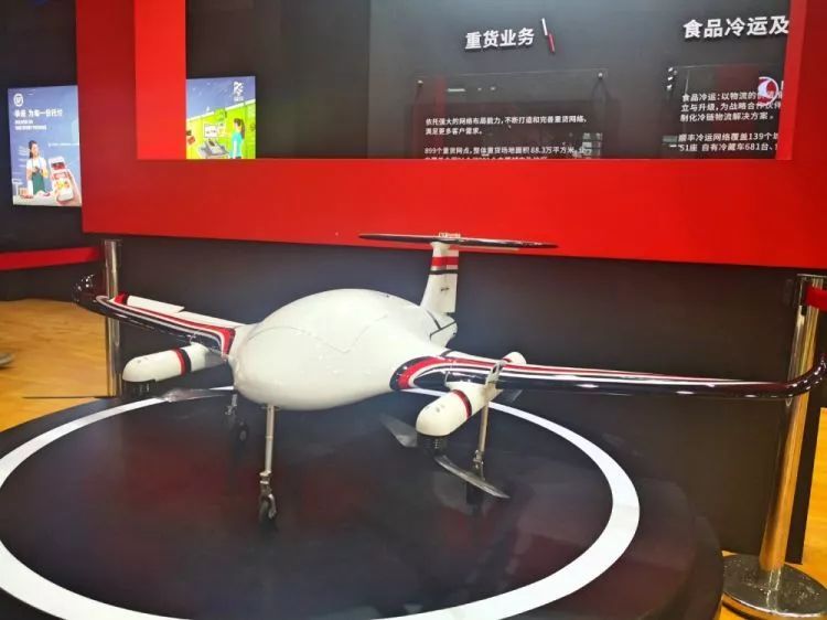 这架旋翼固定翼复合型无人机,油电混合动力,飞行效率高,具有超长的续航能力和超大载重量,能实现100公里以上飞行半径及10-20公斤有效载重,既可以应用于偏远地区远程配送,又能用于将深山里的农产品快速运出。