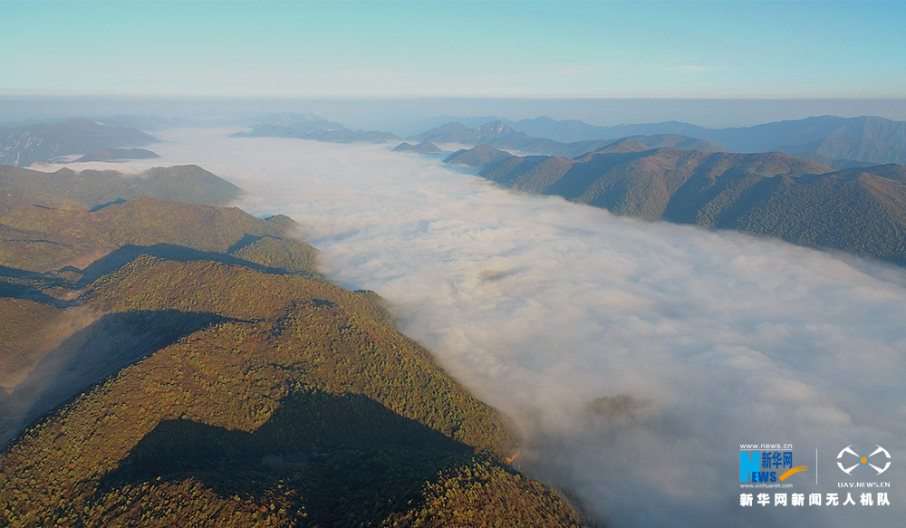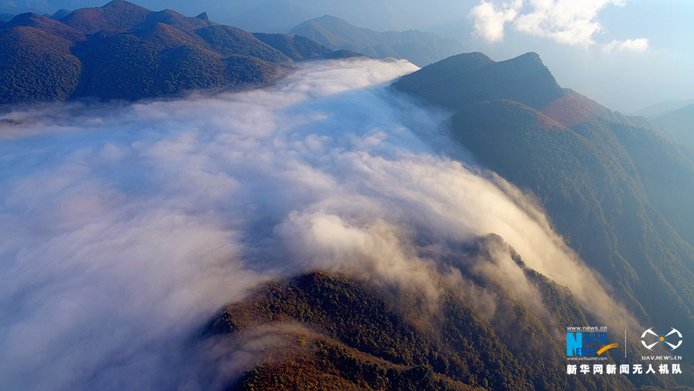 云海有万般姿态,美景有万般风情。深秋时节,重庆市巫溪县红池坝,因苍茫云海呈现出不一样的秋日美景。图为无人机航拍视角下的红池坝晨雾之景,雾锁山头,秋染群山。