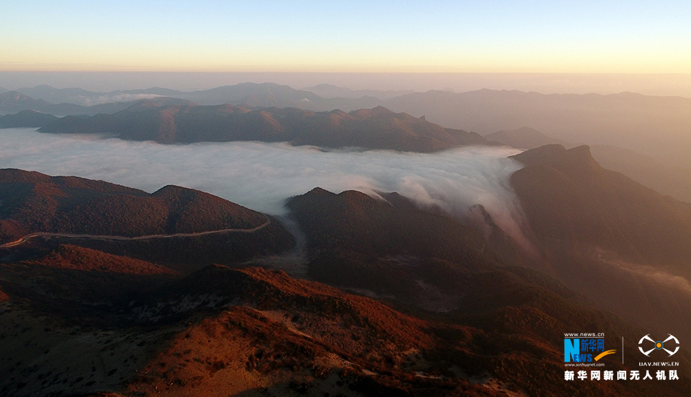 图为红池坝日出。日出之时,太阳的光辉投射在这里的苍山云海,光影间尽是大自然的美景。