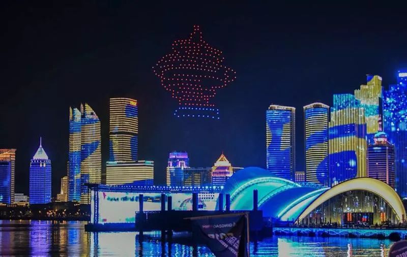 因水上舞台的设计,凭借着精准的定位技术,无人机编队以非常规阵型在“海面”上起飞,通过光的艺术演绎青岛的热情开放!