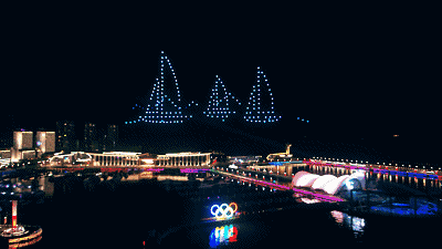 波光粼粼的海面上,无人机点亮无垠的夜空,如同“上合之光”在辽阔的天宇绽放。
