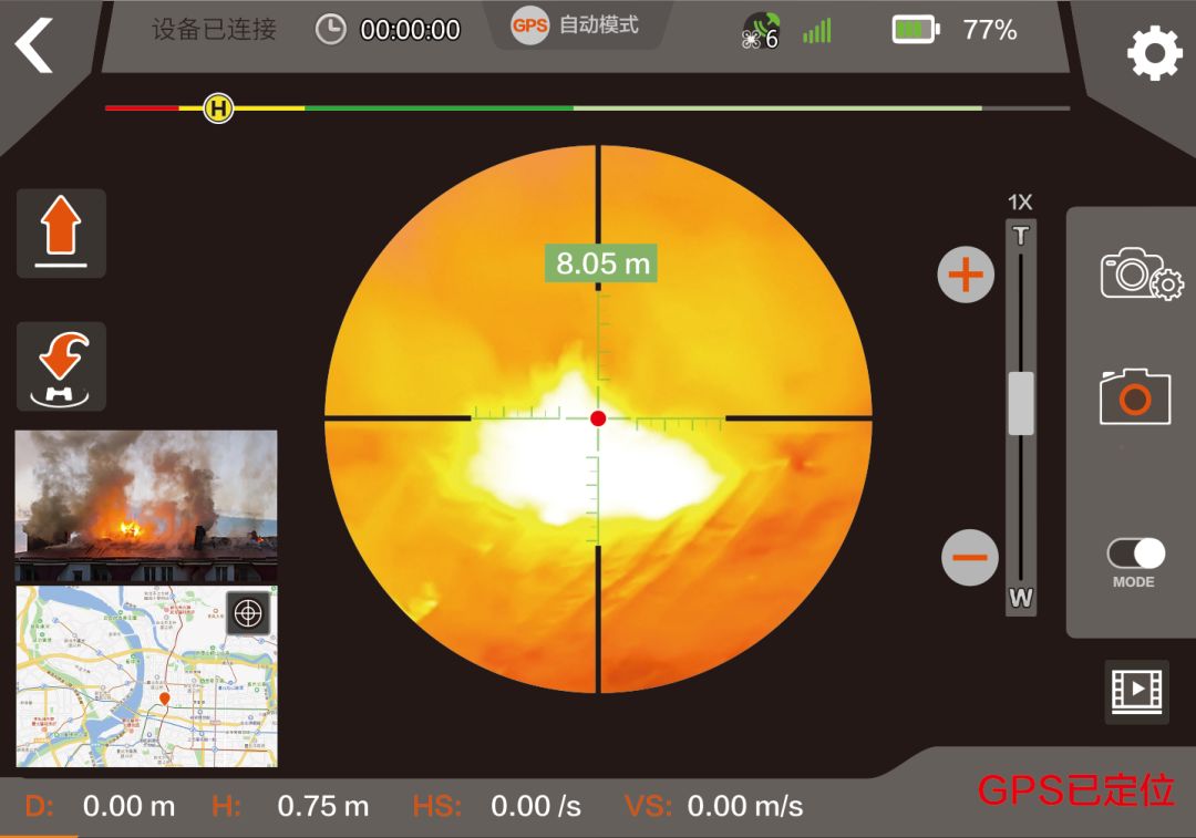 ZHUN拥有超强负载与抗震颤设计,配合高倍瞄准镜加带有夜视功能的高帧率相机,发射精度高,能够在复杂火场气象环境下远程精准发射灭火弹。通过图传实时在地面控制端显示瞄准目标点,在APP客户端有十字瞄准星,大大提高设计精准性,提高救援效率。