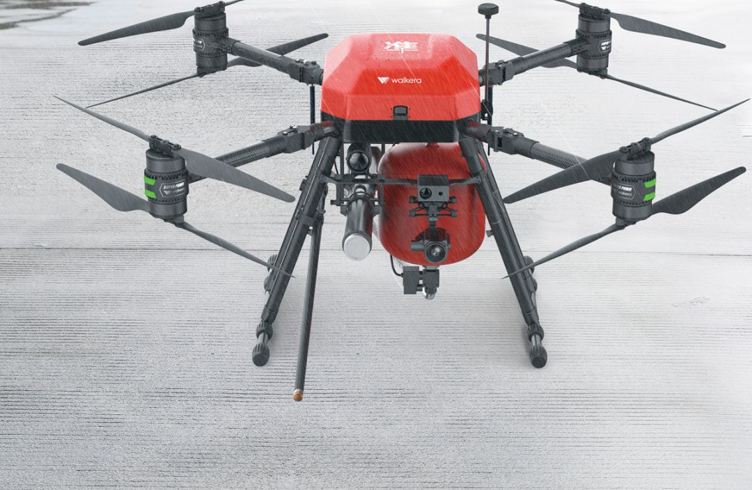 ZHUN灭火无人机搭配行业领先的双重灭火系统,既能远程破玻灭火,也能近距离快速输出灭火能力。