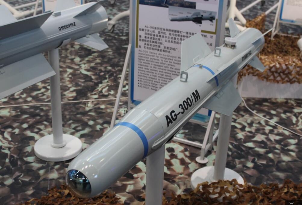 其中值得关注的是红色涂装的导弹,应该是航天科工研发的AG-300小型激光制导空地导弹,根据2016年珠海航展上披露的数据,它最大射程高达30-40公里,几乎是AKD-10(蓝箭7)、海尔法这种同级别50公斤级空地反坦克导弹的3到4倍,这也是目前MQ-9“死神”也欠缺的一种防区外打击能力。