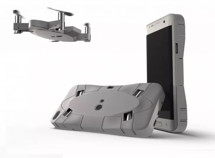 它最大亮点就是超便携——虽说市面上也有类似的小巧无人机,但是像这种能嵌入手机壳的设计几乎没有。