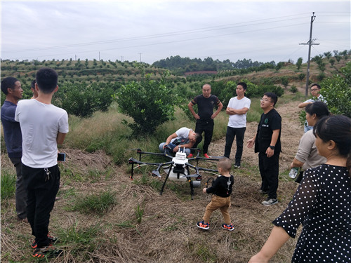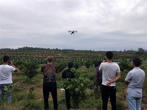 眉山市白马镇是眉山水果生产基地,素有"中国脐橙之乡"称号,当地柑橘种植历史悠久,面积广大。白露至秋分时期是柑橘黄龙病、炭疽病、红黄蜘蛛、潜叶蛾、黑黄凤蝶等病虫害的发生为害期,加上入秋以来降雨较多,气温降低,柑橘病虫害经过一段时间的越夏阶段进入高发期,严重影响当地果农的生产收益。9月20日,受当地柑橘种植大户邀请,成都农业科技职业学院"农院飞客"科技服务团队的岳进老师和黄纯倩老师来到眉山市白马镇开展无人机飞防科技服务。