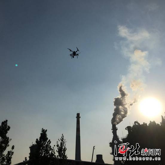 河北省2018—2019年秋冬季第一轮大气环境执法专项行动中,无人机正在高空实施监测。