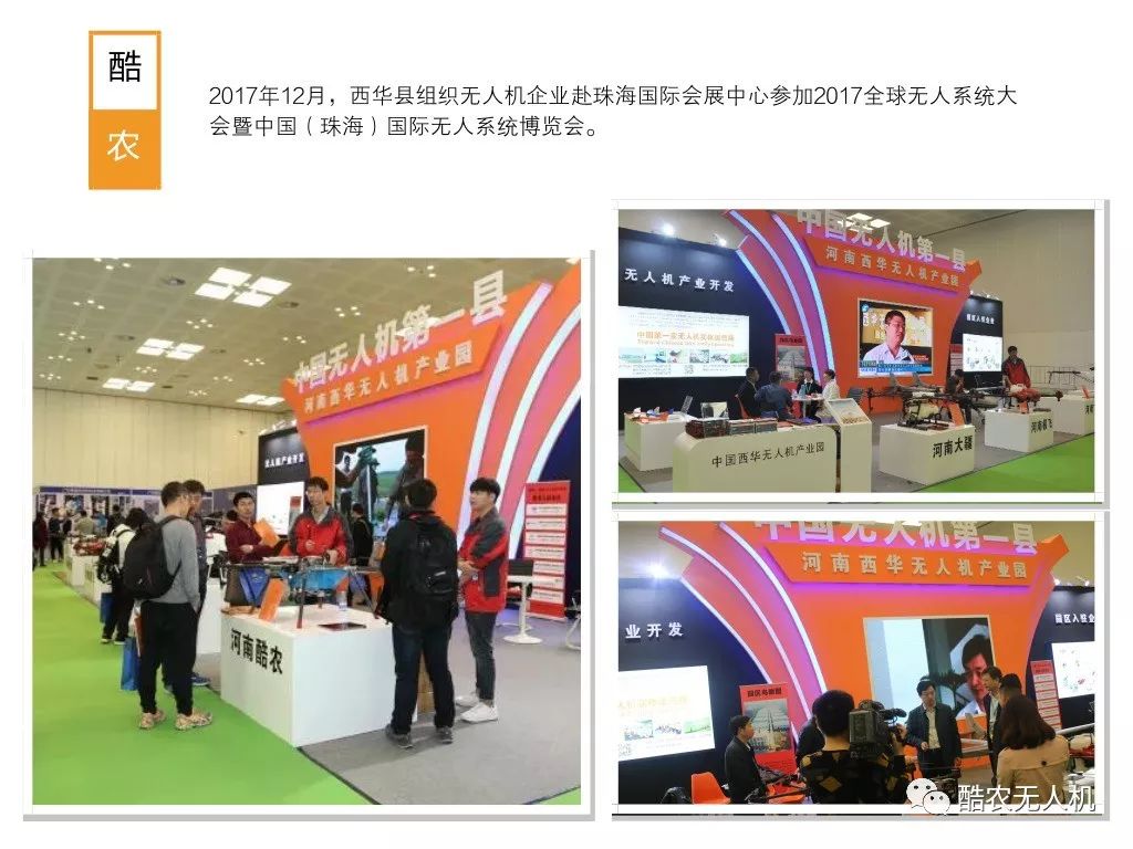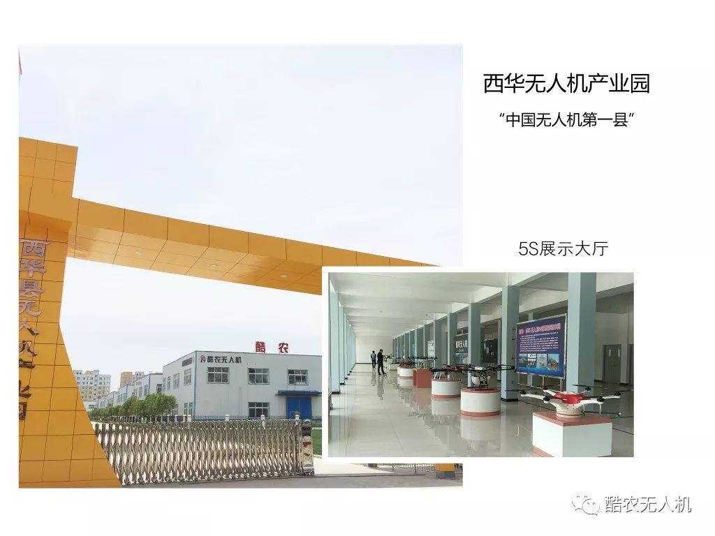 近年来,西华县以无人机智能制造为抓手,加快传统产业改造升级步伐,投资5亿元建设无人机产业园,占地107亩,建筑面积达6万平方米,囊括5S展示营销大厅、无人机大数据中心、试机草坪等;广州极飞、河南酷农、深圳飞客等10多家知名无人机企业入驻园区,西华县无人机产业园被河南省工业和信息委员会评定为省无人机公共技术研发设计中心,年生产无人机能力达3000架。该县采取租赁、免息借款、技术培训、签订合同等方式,组建2200名的无人机植保飞防服务队,实现企业发展和农民解放的双赢效果。西华县无人机产业园把无人机与飞防服务打捆销售,年订单总额可达360多万亩,覆盖全国22个省份。目前,西华县无人机产业园每年植保作业面积达1200万亩,营业收入突破1.8亿,已经形成全国最大的无人机产业集群。高科技无人机新兴产业与农业有效融合发展,彻底打通现代农业生产“耕、种、管、收”全程机械化“最后一公里”,无人机产业日益成为该县新时代的一张靓丽名片。