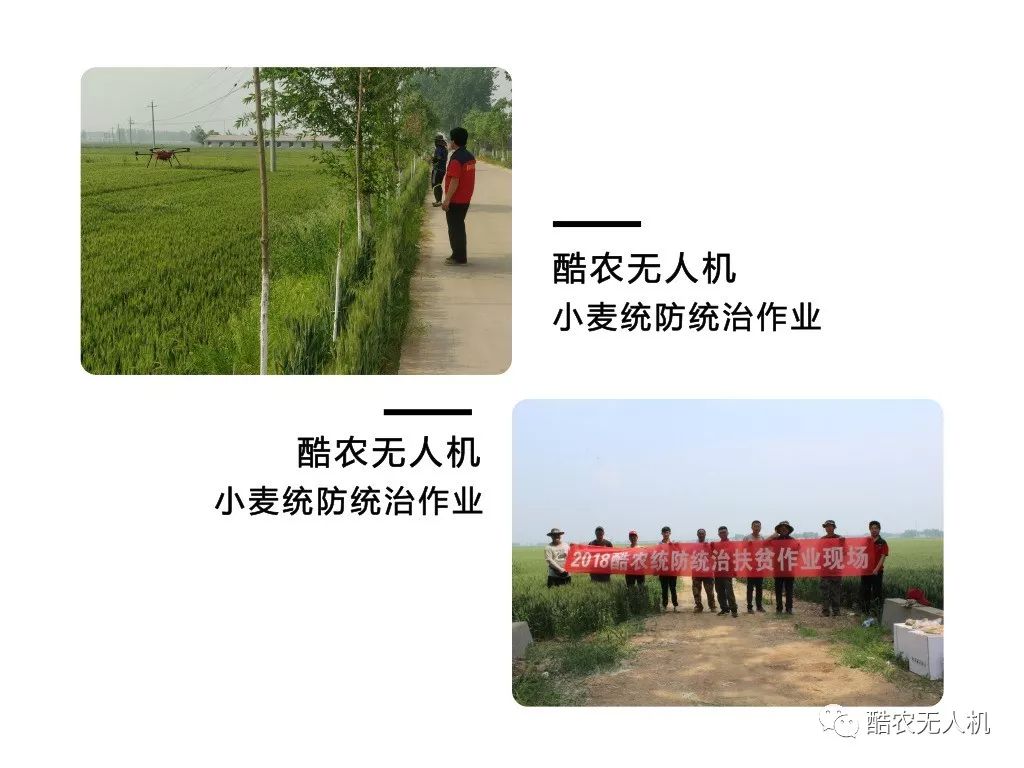 2018年小麦春季病虫害防治期间,政府出资750万元,调集10家无人机企业统一开展病虫害防治作业,出动植保无人机100余架,飞防手300余人次,集中7天时间对全县114个贫困村50万亩小麦实行成本价统防统治全覆盖,确保全县贫困村小麦重大病虫害不出现大面积爆发。