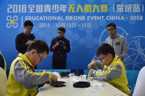 10月13-14日全国青少年教育无人机研学邀请赛圆满落幕。为期两天的比赛时间里,来自青岛,潍坊,荣成,上海30多支队伍,133名选手在荣成市体育馆展开了激烈的角逐,比赛包括教育无人机飞行赛和团体赛,以及新推出的教育无人机编程创意赛、空中足球赛和空中格斗赛。