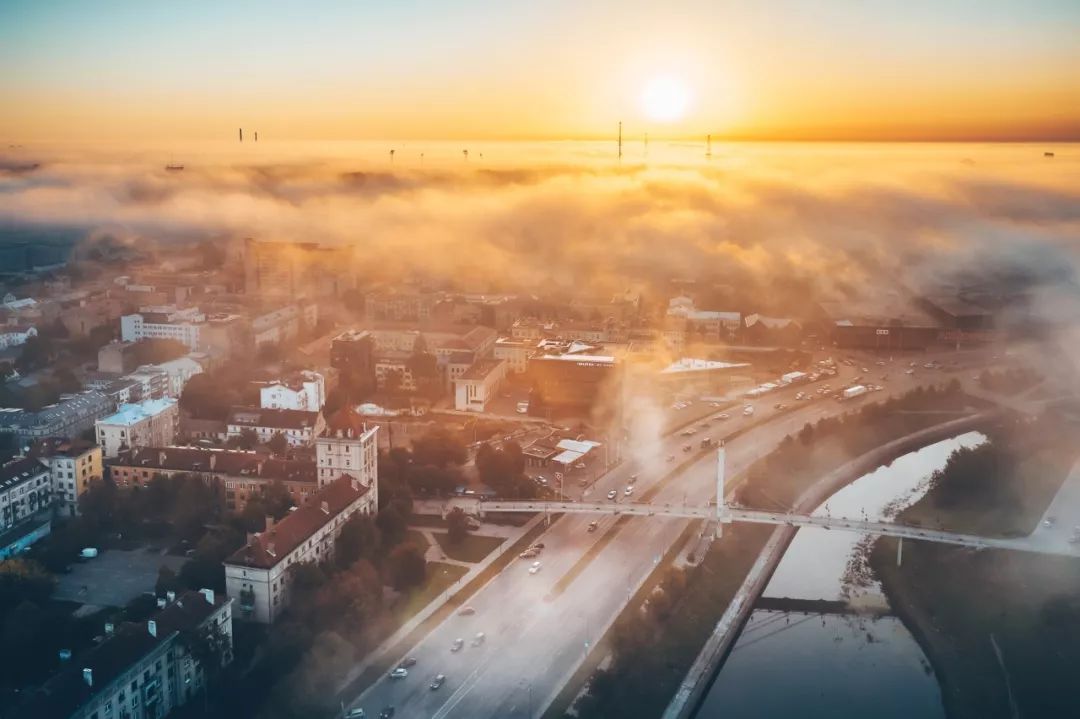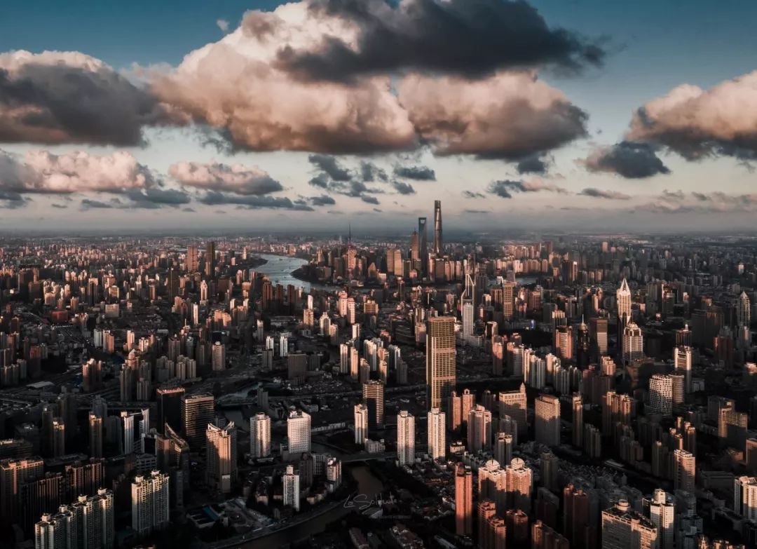 如果说晨光熹微的场景容易令人沉醉,那日落时分的光更多了一分绝美和震撼。黄昏的光与云层交汇在一起,相比白天色温更低,映照在城市间密布的水泥建筑上,呈现出古铜色的质感。这一刻,钢铁与水泥森林展现出它最戏剧性的一面。